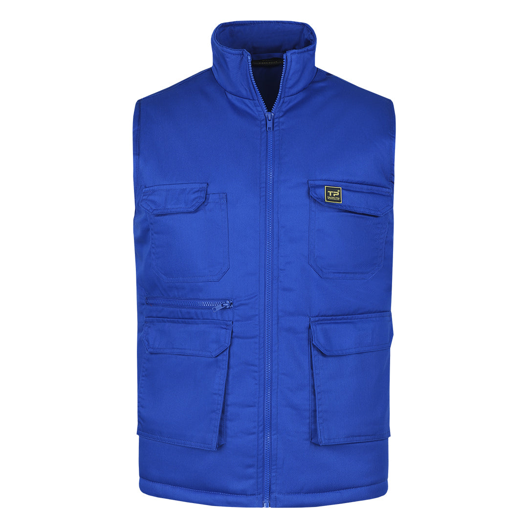 Radni prsluk od kepera sa postavom, visokim ovratnikom i praktičnim rasporedom džepova – četiri prednja džepa sa preklopom i jedan džep sa rajsferšlusom..
