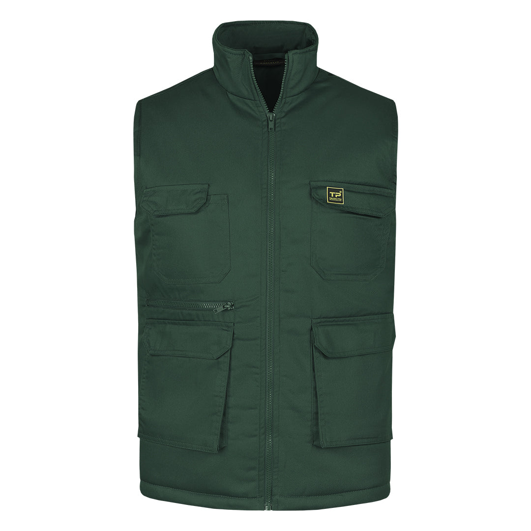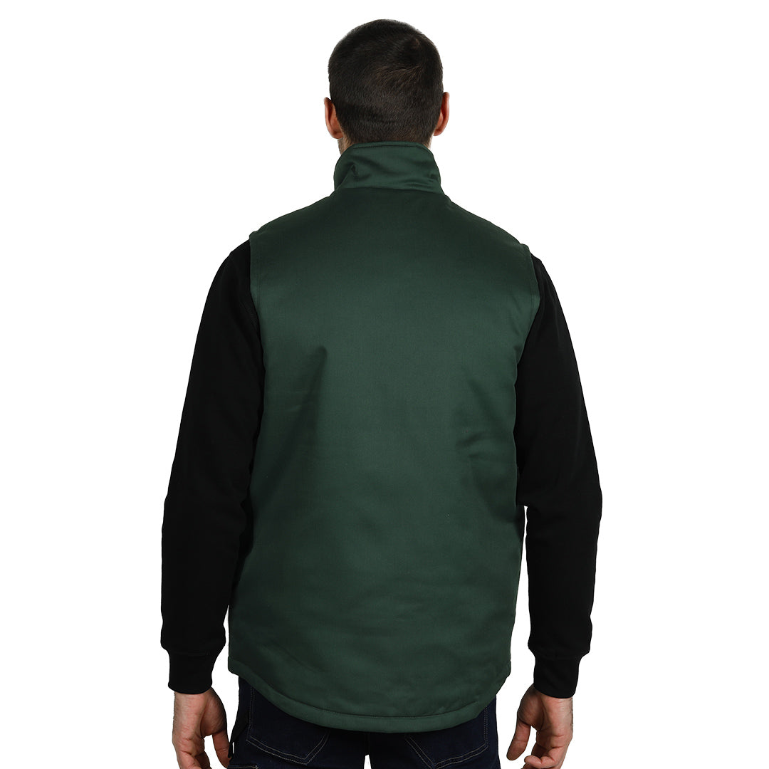 Radni prsluk od kepera sa postavom, visokim ovratnikom i praktičnim rasporedom džepova – četiri prednja džepa sa preklopom i jedan džep sa rajsferšlusom..