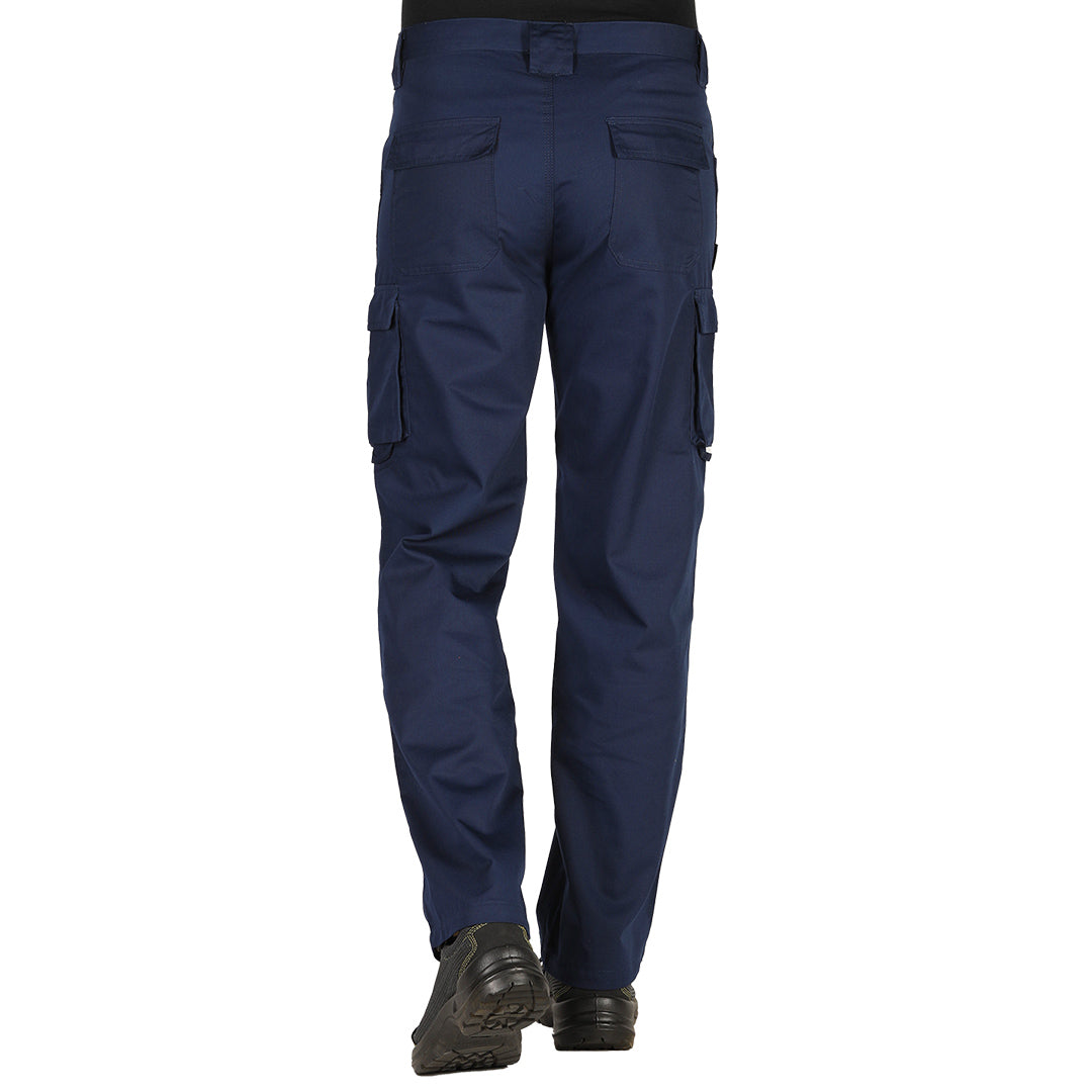 Pantalone, 240gr/m2, keper, dva prednja džepa, mali džep, dva džepa pozadi i dva sa strane, dve gajke za čekić, etiketa za lične podatke unutra, trostruki štepovi i ringlice, kao ojačanje.