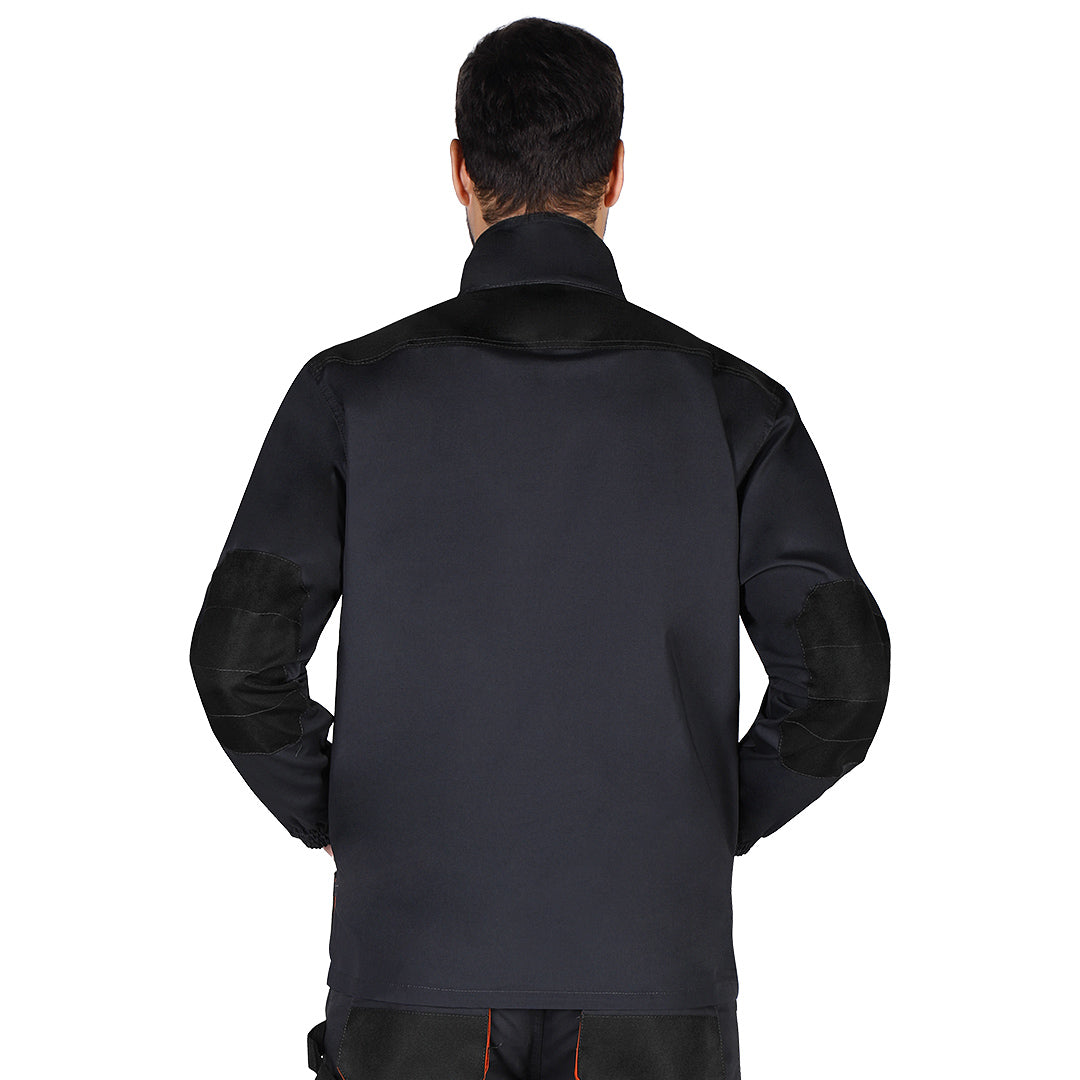 Bluza, 270gr/m2, platno prepletaj, visoka kragna, preklop sa čičak trakama preko rajsferšlusa, elastične ranfle oko rukava, ojačanja od 600D poliestera na mestima izloženim većem habanju (džepovi, ramena, laktovi), duži zadnji deo, dva džepa na grudima, dva prednja džepa, praktični odeljci za alat, reflektivni detalji, etiketa za lične podatke unutra.