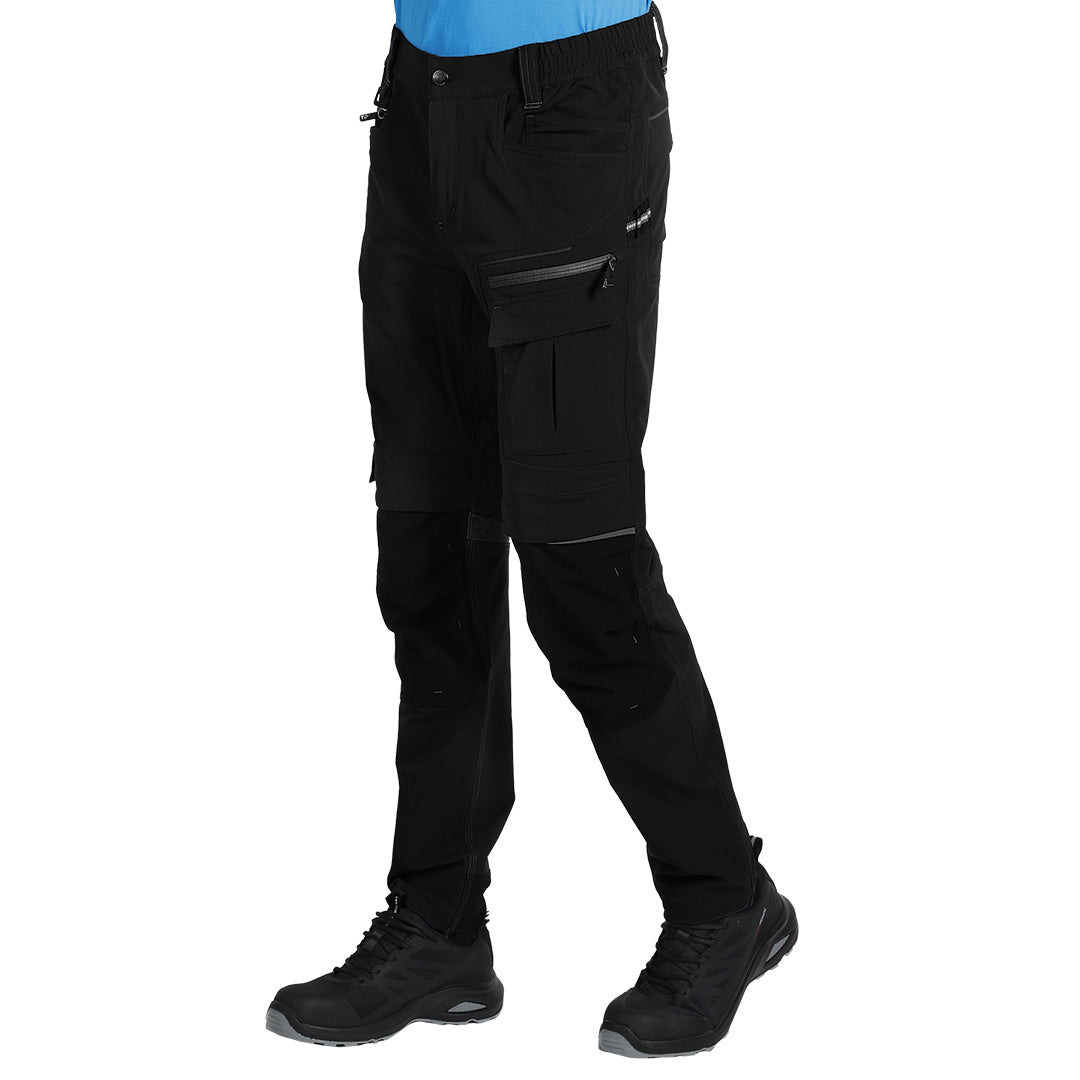 Elastične radne pantalone od 4-way stretch najlona, 260 g/m², sa produženim pojasom na zadnjoj strani, ojačanjima na kolenima i zadnjem delu nogavica. Dva prednja džepa, dva zadnja džepa sa preklopom, dva multifunkcionalna džepa na nogavicama, trostruki štepovi kao ojačanje, reflektivni detalji..