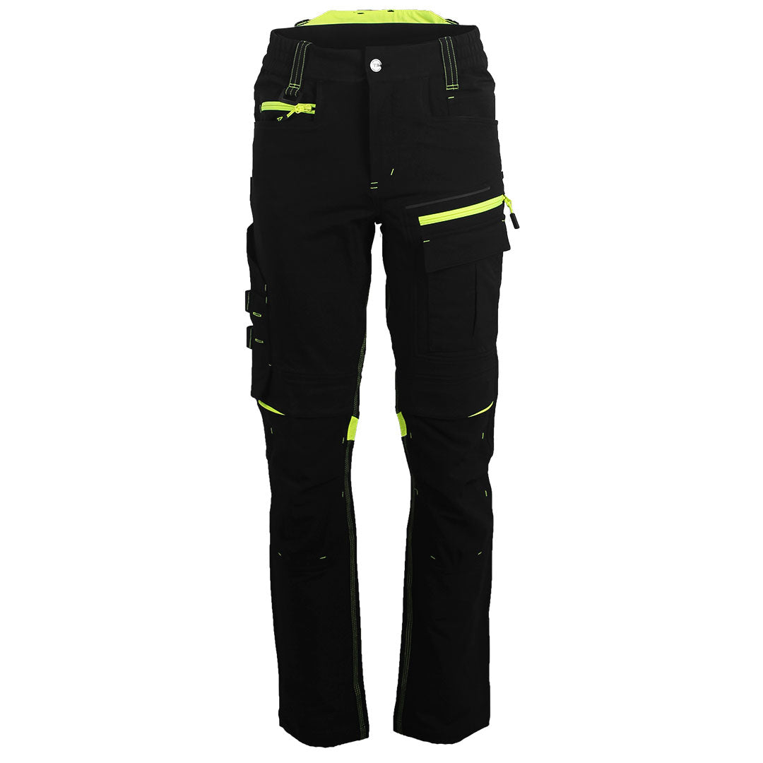 Elastične radne pantalone od 4-way stretch najlona, 260 g/m², sa produženim pojasom na zadnjoj strani, ojačanjima na kolenima i zadnjem delu nogavica. Dva prednja džepa, dva zadnja džepa sa preklopom, dva multifunkcionalna džepa na nogavicama, trostruki štepovi kao ojačanje, reflektivni detalji..